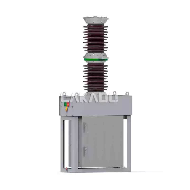 This model of circuit breaker adopts a three-phase separated pole structure, ensuring that a fault in one phase will not cause a three-phase short circuit. The vacuum arc extinguishing chamber is housed within the insulating sleeve of each phase, eliminating the risk of short-circuit faults caused by condensation. The external insulation employs imported outdoor epoxy resin or silicone rubber materials, providing excellent hydrophobic and anti-fouling properties, making it suitable for outdoor environments with high weather resistance requirements and harsh operating conditions. The overall structure of the circuit breaker is compact, with a small footprint,light weight, and easy installation. The interior of the cabinet is filled with transformer oil but contains no sulfur hexafluoride gas, meeting the requirements for oil-free retrofits and environmental protection.