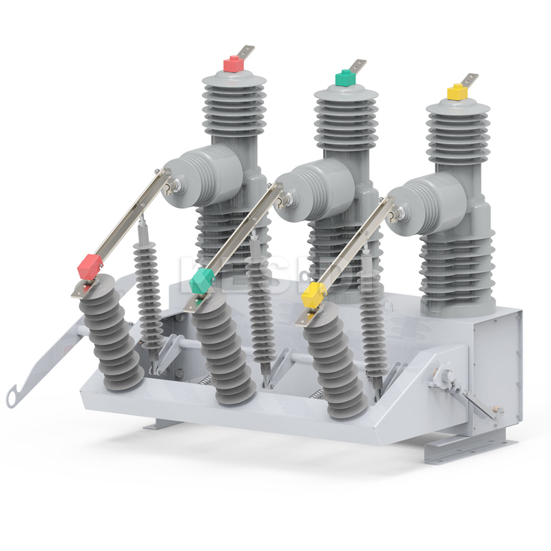 This model of circuit breaker adopts a three-phase separated pole structure, ensuring that a fault in one phase will not cause a three-phase short circuit. The vacuum arc extinguishing chamber is housed within the insulating sleeve of each phase, eliminating the risk of short-circuit faults caused by condensation. The external insulation employs imported outdoor epoxy resin or silicone rubber materials, providing excellent hydrophobic and anti-fouling properties, making it suitable for outdoor environments with high weather resistance requirements and harsh operating conditions. The overall structure of the circuit breaker is compact, with a small footprint,light weight, and easy installation. The interior of the cabinet is filled with transformer oil but contains no sulfur hexafluoride gas, meeting the requirements for oil-free retrofits and environmental protection.