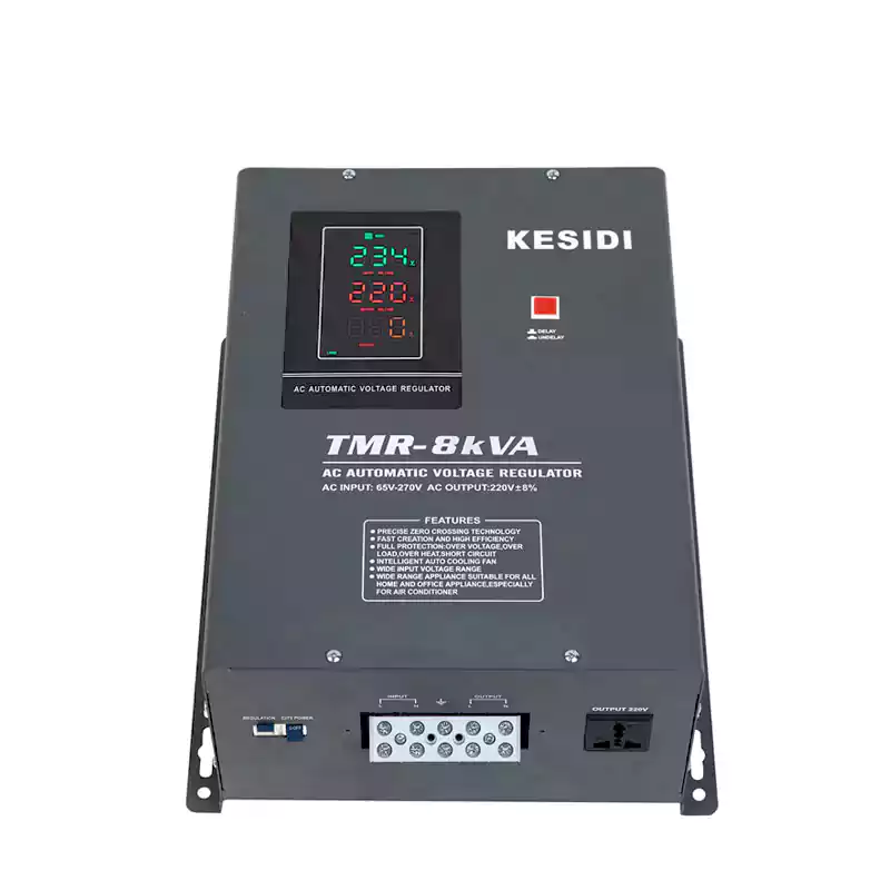 AVR series high-precision fully automatic AC voltage regulator is composed of a contact type voltage Stabilizer, servo motor, microcontroller control system, etc. When the power grid voltage is unstable or the load changes, the automatic sampling control circuit sends a signal to drive the servo motor, adjust the position of the voltage regulator carbon contact, and adjust the output voltage of the regulator to the rated value and reach a stable state. Equipped with LCD display, overvoltage, overcurrent, over temperature protection functions, and can be customized with long delay and undervoltage protection according to user needs.